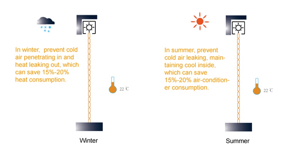 2.PU foame inside can give thermal insulation properties.Use High-density aluminum alloy can ensure this door strong enough,and this door will be lighter.